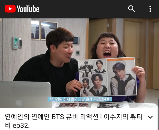 최근 이수지는 자신의 유튜브 채널인 '이수지의 쀼티비 ep.32'을 통해 방탄소년단의 이번 정규4집 앨범 타이틀'온(ON)'의 키네틱 필름에 대한 리액션 영상을 공개했다.