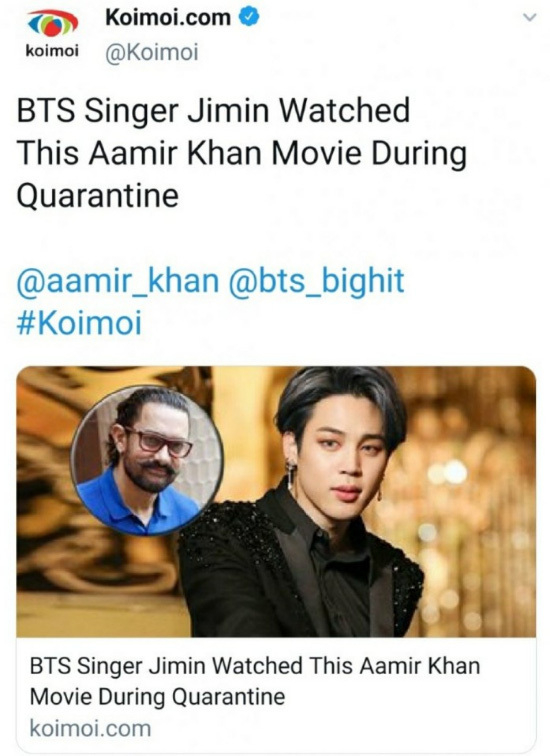 이는 지민이 브이라이브 도중 재미있게 본 영화로 '세 얼간이'를 언급하자, 인도팬들과 해당 영화의 제작사가 직접 나서 "세 얼간이"에 대한 애정을 보여주어 고맙다" 하며 기쁨을 감추지 못한 것이다.