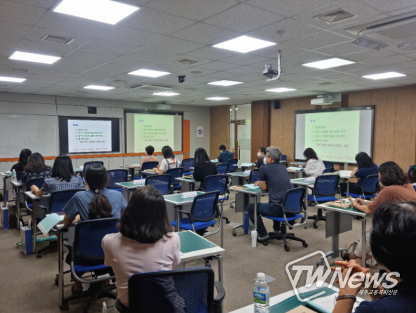[제주교통복지신문=박희찬 기자] 제주도교육청은 8월 9일부터 8월 10일까지 제주수학체험관 미래수학교실에서 도내 초․중등 교원 및 교육전문직원 14명을 대상으로 2021 제주어 톺아보기 직무연수를 운영했다.