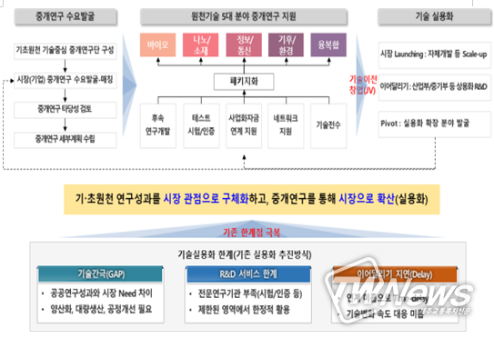 과기정통부는 주로 기초·원천연구를 지원하고 있어 창출된 대부분의 연구성과(기술성숙도 4단계 이하)를 시장에서 원하는 수준(기술성숙도 7단계 이상)까지 성숙시키는 후속 지원 방안이 절실한 상황이었다.