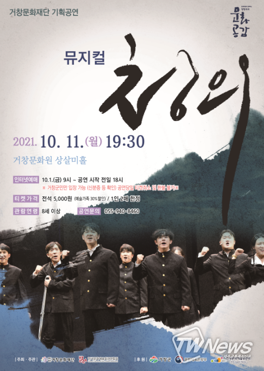 [제주교통복지신문 김지홍 기자] (재)거창문화재단은 오는 10월 9일 오후 2시, 4시에 가족 뮤지컬 「겁쟁이 빌리」, 10월 11일 오후 7시 30분 뮤지컬「청의」등 풍성한 공연을 선보일 계획이라고 밝혔다.
