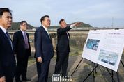 [제주교통복지신문 김강석 기자] 윤석열 대통령은 4월 2일 오후 충남 공주시 옥룡동을 찾아 수해 현장을 둘러보고 복구 상황을 점검했다. 공주시는 작년 여름 집중호우로 인해 도로와 주택이 침수되고 공산성 성벽 일부가 무너지는 등 각종 피해가 발생했던 곳이다. 대통령은 작년 7월 수해 발생 직후 공주시 대학리 일원의 피해 현장을 찾아 주민들을 위로하고 복구 지원을 약속한 바 있다. 옥룡동 침수 피해 현장에 도착한 대통령은 최원철 공주시장으로부터 수해 복구 상황을 보고받았다. 최 시장은 작년 7월 중순에 내린 집중호우로 금강 수위가 상승해 저지대인 옥룡동 일대에 침수 피해가 발생했으나, 재발 방지와 안전한 환경 조성을 위해 현재 빗물펌프장 설치, 우수관로 개량 등을 추진 중에 있다고 보고했다. 특히, 멀리 보이는 모래톱을 가리키며 대청댐 방류 시 하천 수위가 상승하므로 안전 확보를 위해 준설도 필요할 것으로 보인다고 했다. 이에 대통령은 우리나라 지방 하천에 준설할 곳이 많다며 준설토 활용 필요성에 대해 강조했다. 대통령은 현장을 떠나기 전 골목 입구에 모인 옥룡동 주민들과 일일이 악수를 나누고, 간단한 인사말도 덧붙였다.