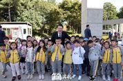 [제주교통복지신문 김강석 기자] 윤석열 대통령은 10월 5일 오전 제577돌 한글날(10. 9.)을 앞두고 국립한글박물관을 깜짝 방문했다. 국립한글박물관은 우리 민족 최고의 문화유산인 한글의 문자적·문화적 가치를 널리 알리기 위해 2014년 10월 9일 개관했으며, 이번 주 10월 4일부터 2023 한글주간을 맞이해 ‘미래를 두드리는 한글의 힘’을 주제로 다양한 행사를 진행하고 있다. 한글박물관 앞마당에서 노란색 유니폼을 입고 병아리들처럼 옹기종기 모여 선생님의 설명을 듣고 있던 광명시 예빛유치원 어린이들과 하남시 명성 어린이집 어린이들은 대통령이 도착하자 ‘안녕하세요’라며 대통령 주위로 모여들었다. 대통령은 어린이들에게 몇 살인지, 박물관은 구경했는지 등을 물으며 다 같이 기념 촬영을 했다. 촬영을 마친 대통령이 전시관 쪽으로 발걸음을 옮기자 어린이들은 ‘안녕히 가세요’라며 손들어 인사했다. 전시관으로 이동한 대통령은 유호선 학예연구관의 안내에 따라 ‘훈민정음, 천년의 문자 계획’ 상설 전시를 둘러보았다. 7개 공간으로 나누어진 전시실을 차례차례 보면서, 훈민정음해례본과 언해본, 정조가 어릴 때 외숙모에게 보낸 14통