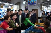 [제주교통복지신문 김강석 기자] 윤석열 대통령 부부는 9월 14일 부산 민락어민활어직판장을 방문해 수산물을 구입하고 상인들과 소통의 시간을 가졌다. 현직 대통령이 부산 민락어민활어직판장을 방문한 것은 이번이 처음으로, 좁은 시장 통로에도 불구하고 많은 시장 방문객들과 상인들이 대통령을 환영했다. 환영 인파들은 “윤석열”을 연호하며 “여기까지 찾아주셔서 감사하다”, “열심히 도와드리겠습니다”라고 대통령을 응원했다. 대통령은 멍게, 새우, 생선 등을 구입하고, 상인들과 일일이 인사를 나누며 “큰 어려움은 없느냐”, “갈수록 나아질 거다”라며 격려를 아끼지 않았고, 이에 상인들은 “대통령님 파이팅하세요”라고 대통령에게 박수를 보냈다. 대통령이 시장을 나오자 지역주민 300여 명이 대통령을 마중 나와 기다리고 있었고, 대통령은 주민들과 일일이 악수하고 사진을 찍으며 환영에 화답했다. 대통령은 시장 방문에 이어서 인근 횟집으로 자리를 옮겨 청년 의인, 창업가 등 부산 지역 청년들을 비롯하여 기업인, 지역 정치인들과 함께 만찬을 가졌다. 만찬에 참석한 한 기업인이 “외국에 다니시면서 영업사원