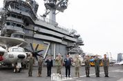 [제주교통복지신문 김강석 기자] 윤석열 대통령은 6월 25일 오후 부산 해군작전기지에 정박 중인 미국 시어도어 루즈벨트 항공모함을 방문했다. 현직 대통령이 미국 항공모함에 승선한 것은 1974년 박정희 전 대통령, 1994년 김영삼 전 대통령에 이어 세 번째이다. 이번 루즈벨트 항공모함의 방한은 지난해 4월 한미 정상이 채택한 ‘워싱턴 선언’의 이행조치로서, 강력한 확장억제를 포함한 미국의 철통같은 대한 방위공약을 상징한다. 대통령이 루즈벨트함에 승선하자, 대통령의 승함을 알리는 종소리가 울렸다. 이후 임무에 따라 각기 다른 색의 옷을 입은 영송병의 구령과 함께 300여 명의 한미 장병들이 큰 환호성으로 대통령을 맞았다. 이후 대통령은 군 주요 직위자와 함께 항공기 이동용 엘리베이터를 타고 비행 갑판으로 이동했다. 대통령은 비행 갑판에서 크리스토퍼 알렉산더 제9항모강습단장으로부터 항모의 주력 전투기인 F/A-18 등 함재기들과 전투기가 이착륙할 때 필요한 각종 장비에 대해 자세한 설명을 들었다. F/A-18은 영화 ‘탑건 매버릭’에 등장한 전투기이기도 하다. 대통령은 이후 항공모함의 관제타워인