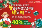 [제주교통복지신문 민진수 기자] 제주특별자치도는 ‘도민과 함께하는 송년맞이 농촌융복합산업 제품 세일 페스타’를 22일 제주도청 민원실 입구 이면도로에서 개최한다. 제주도와 제주농촌융복합산업지원센터가 주최하는 이번 행사는 올해를 마무리하며 농촌융복합산업 제품을 도민에게 홍보하기 위해 마련됐다. 우수한 농촌융복합산업 제품을 시중가보다 40% 이상 할인 가격으로 만나볼 수 있으며, 간식·육가공 등 가공식품, 건강식품, 전통주, 화장품 등 송년맞이 크리스마스 선물세트 제품들이 다양하게 구성돼 있다. 또한 어린이합창단(클럽자자어린이합창단)의 캐롤공연도 준비되어 있어 따뜻한 연말 분위기를 자아낼 것으로 기대된다. 이 외에도 제주산 돼지고기와 제주산 당근 최대 40% 할인행사, 청년장애인카페(플로베) 유기농 커피 및 화분 전시판매 등을 병행한다. 또한 제주도와 제주농촌융복합산업지원센터의 지원을 통해 생산된 인증업체 협업 기획상품(식충식물 체험키트, 제주하귤 이너뷰티 콜라겐)과 현장코칭 연계 후속지원사업 상품들이 전시될 예정이다. 문경삼 제주도 농축산식품국장은 “올 한해 농촌융복합산업