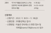 [제주교통복지신문 이청 기자] 제주도립 김창열미술관에서 소장품 기획전 '조우(Close Encounter)' 전시연계 체험 프로그램을 11월 12일부터 12월 4일까지 미술관 관람객을 대상으로 운영한다. 캘리그라피 전문가와 함께하는 체험 프로그램은 11월 12일, 19일(14:00~16:00) 총 2회 운영되며, 1회차 강좌는 '회귀' 작품의 조형미와 캘리그라피 서체를 융합하는 프로그램이 진행되며, 2회차 강좌는 전시작품 감상 후 느낀 감정을 문장 위주로 캘리그라피를 체험하는 프로그램으로 진행된다. 프로그램 참여 인원은 회차당 20명으로, 참여 신청은 11월 9일부터 18일까지 미술관 안내 데스크나 담당자 이메일로 선착순 접수하면 된다. 제주교통복지신문, TW News