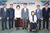 [제주교통복지신문 이청 기자] 제주특별자치도의회 의원연구단체인 '제주사회적경제포럼'이 2022년 9월 13일 창립총회를 개최했다. 제주특별자치도의회는 “의원연구단체 구성 및 지원 조례”에 근거하여 의원 연구단체를 구성하여 활동할 수 있도록 지원하고 있으며, '제주사회적경제포럼'은 총 10명 의원으로 구성됐다. 창립총회에서는 임원선출, 회칙제정, 2022년 하반기 활동계획 등을 심의‧의결했다. 대표는 강경흠 의원(아라동, 더불어민주당)이 선출됐으며, 부대표에는 김경미 의원(삼양동·봉개동, 더불어민주당), 이남근 의원(비례대표, 국민의힘)이 선출됐다. 강경흠 대표의원은 “제주지역내 사회적경제 활성화를 위해 의원들과 민간단체, 전문가가 참여하는 간담회를 통해 현장소통과 정책발굴의 기회를 마련하겠다”며, “앞으로 동료의원님들과 함께 사회적경제 현안에 대해 공부하며 활성화 방안을 찾아 나가겠다.”고 했다. 연구단체에는 강경흠(대표), 김경미(부대표), 이남근(부대표), 김기환, 박호형, 양병우, 이경심, 임정은, 정민구, 현길호 의원 10명이 참여한다.