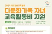 [제주교통복지신문 전희연 기자] 서귀포시는 오는 5월부터 서귀포시가족센터를 통해 저소득 다문화가족 자녀 교육활동비 지원사업 신청자를 모집한다고 밝혔다. 다문화가족 자녀 교육활동비 지원사업은 학교 적응이나 학습에 어려움을 겪는 저소득 다문화가족 자녀에게 학업·진로 역량을 개발할 수 있도록 다양한 교육 기회를 보장하기 위해 올해 처음으로 시행되는 시범사업이다. 지원 대상은 서귀포시에 거주하는 교육급여를 받지 않는 기준 중위소득 50% 초과 100% 이하인 다문화가구의 7~18세 한국 국적의 자녀이다. 지원금액은 (초등) 연 40만원, (중등) 연 50만원, (고등) 연 60만원으로 학습을 위한 교재 구입, 독서실 이용 등 교육 활동과 예체능 및 직업훈련 실습을 위한 재료 구입 등에도 사용할 수 있다. 지원을 희망하는 자는 신청서와 구비서류를 지참하여 서귀포시가족센터(서귀포시 서호남로 12(서호동))에서 신청하면 되고, 지원 대상은 소득 및 중복지원 여부 확인 등을 통해 최종 결정되어 통보할 예정이다. 신청기간은 5~6월(1차), 7~8월(2차), 9월(3차)이며, 교육활동비 지급은 신청