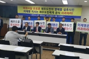 가칭 제주다움을 추구하는 사람들의 모임은 26일, 도의회 기자회견을 통해 이재명 경기도지사의 진정성있는 사과를 요구했다. 제주다움을 비롯해 중소기업융합 제주도연합회, 제주도 연합청년회 등 단체들은 지난 3월 12일, ‘필리핀으로 불법수출 됐다가 반송 처리된 쓰레기 등 합계 4,666톤의 폐기물이 평택항에 쌓여 있고, 그 중 상당 부분이 제주도가 배출한 압축폐기물이다’라는 취지의 방송 보도가 있었다고 배경을 설명했다. 이에 경기도 측은 그 보도 내용의 진위 여부에 대하여 아무런 확인도 하지 않은 상태에서 일방적으로 그 보도가 사실이라고 단정하고 경기도가 쓰레기를 처리한 후 제주도에 쓰레기 처리비용을 구상할 계획이라고 제주도에 통보해 왔으며, 제주시와 평택시 관계자, 평택항만 및 세관 관계자들이 평택항에 있는 쓰레기들을 샘플링 방식으로 합동조사 했으나, 제주도에서 배출한 것으로 의심할 만한 쓰레기가 전혀 발견되지 않았다고 덧붙였다. 이런 상황에도 불구하고 이재명 경기도지사는 지난 3월 28일, ‘평택항에 있는 쓰레기 4,666톤 중 상당 부분이 제주도에서 발생한 쓰레기’라는 글을 자신의 페이스북에 게재했으나 이후 처리 과정에서도 제주도의 것이라고 의심할만한 쓰레