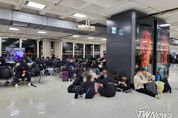 지난 24일 오후 제주공항 항공기 운항이 재개된 가운데 일부 이용객들이 비행기를 기다리면서 제주공항 바닥에 앉아 술이나 음료수를 마셔 눈살을 찌푸리게 했다. 제주교통복지신문, TW News