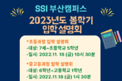[제주교통복지신문 이소민 기자] SSI 부산캠퍼스는 11월 18일 2023 봄학기 신·편입생 모집을 위해 입학설명회를 개최할 예정이라고 14일 밝혔다. 학교 측에 따르면 이번 입학설명회는 SSI 부산캠퍼스에서 진행되며, 7세~초5 초등과정과 초6~고1 중고등 과정으로 실시된다. 11월 18일 오전 10시 30분에 초등과정, 오후 1시 30분에 중고등과정으로 각각 진행된다. 입학설명회에서는 초등 1, 2학년 과정 개설, SSI부산 캠퍼스의 장점과 SSI부산 캠퍼스 초중고등과정에 대한 정보, 아이비리그를 포함한 대학 입학 노하우를 공유할 계획이다. SSI 부산캠퍼스(SSI Busan Campus)는 미국 정규 교육을 제공하는 사립 교육기관이다. 모든 수업에 학생들이 직접 참여하고 체험을 통해 이론을 이해하고 답을 찾아가는 방식으로 프로그램이 구성돼 있다. 학교 관계자는 “SSI 부산캠퍼스는 코로나로 인해 해외 조기 유학의 꿈이 좌절된 학생과 제주 국제학교를 재학하는 학생들이 많이 전학 오고 있다”며 “특히 이번 설명회에서는 초등 1, 2학년 개설과 다양한 입시 정보와 교육정보 등 전문적인 상담이 이루어져 참가자들의 만족도가 높을 것으로 기대한다”고 전했다. 제주