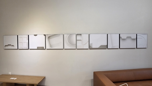 제주 서귀포시 안덕면 이노메싸 제주 플래그십 스토어에서 김도균 작가의 사진 작품이 전시되고 있다. 건축 구조와 도시의 질서를 포착한 대형 작품이 전시 공간의 중심을 이루고 있다. (사진=이문호 기자) 제주교통복지신문, TW News