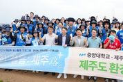 [제주교통복지신문 민진수 기자] 제주특별자치도와 중앙대학교, 제주대학교가 청년 성장과 지역 발전의 새 모델인 ‘런케이션(Learning + Vacation)’ 등을 통한 교류 활성화에 나섰다. 제주도는 18일 오전 도두봉 정상에서 중앙대학교, 제주대학교와 상생발전을 위한 공동 협력을 도모하는 업무협약을 체결했다고 밝혔다. 오영훈 제주도지사, 박상규 중앙대 총장, 김일환 제주대 총장을 비롯해 양 대학 학생과 교직원 등 120명이 참석한 이날 협약식은 교육과 휴식을 결합한 새로운 모델의 시작을 알렸다. 이번 협약은 교육발전특구와 연계해 계절학기 학점교류 제도를 활용한 런케이션 운영 등 협력사업을 추진하고, 교육·연구 분야 교류 활성화를 목표로 한다. 협약 체결 후 오영훈 지사는 중앙대, 제주대 학생들과 함께 도두봉과 어영소공원 해안도로 일대에서 플로깅 활동에 동참했다. 이는 중앙대의 하계방학 봉사활동 ‘중대한 걸음:제주路(로)’ 프로그램의 하나다. 100여 명의 중앙대 학부생과 교직원은 15일부터 4박 5일 일정으로 제주를 방문해 플로깅 등 환경정화 활동과 기업탐방 등을 진행하고 있다.