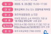 [제주교통복지신문 박희찬 기자] 제주도교육청 제주국제교육원은 자녀들의 영어교육에 관심 있는 초등학교 학부모를 대상으로 9월 23일에 외국어듣기능력신장 학부모 동아리 사례발표회를 실시한다. 사례발표회는 오후 3시부터 5시까지 2시간 동안 제주학생문화원 소극장에서 개최될 예정으로, 9월 4일부터 9월 17일까지 참가 신청을 받고 있다. 외국어듣기능력신장 학부모 동아리는 자녀들이 생활 속에서 자연스럽게 영어를 언어로 익히기를 바라며 듣기 활동이 먼저라는 인식을 함께 공유하고 실천하는 학부모들의 모임이다. 아이들이 즐겁게 영어 듣기에 몰입할 수 있는 환경을 조성하여 자연스러운 영어습득을 강조하고 있다. 사례발표회에서는 외국어듣기능력신장 학부모 동아리 소속 학부모들이 '듣기중심영어 10년, 시간의 힘! 꾸준함의 힘!', '듣기중심영어를 만난 후 우리집의 변화', '터잡기 과정과 영어 원음 듣기의 시작'이라는 주제로 생활 속에서 영어를 언어로 즐겁게 익혔던 영어습득의 생생한 과정 및 영어를 통하여 아이와 더 깊이 소통했던 경험담을 공유할 예정이다. 강승민 제주국제교육원장은“외국어듣기능력신장 학부모 동아리 사례발표회가
