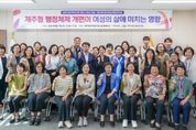[제주교통복지신문 김현석 기자] 제주여성가족연구원은 8월 21일 오후 3시 제주여성가족연구원 2층 중회의실에서 “제주형 행정체제 개편이 여성의 삶에 미치는 영향”이란 주제로 제29회 제주여성가족정책포럼을 개최했다. 특히 이번 포럼은 제주여성가족연구원 개원 10주년 기념으로 여성 · 시민단체와 함께했으며, 민선8기 제주형 행정체제 개편에 따른 여성 · 가족 · 성평등 정책 대응방안을 모색해보는 자리가 되었다. 발표는 강창민 제주연구원 선임연구위원이 ‘제주형 기초자치단체 도입에 대한 이해와 도민사회의 변화’란 주제로 진행되었다. 강창민 발표자는 “제주형 기초자치단체 설치의 배경은 민주성 · 주민참여 약화, 자치권 없는 행정시, 행정서비스 질 저하라는 행정시의 한계로 인한 것이다”라며“제주형 기초자치단체 설치로 인하여 주민편의, 복리증진, 균형발전을 달성할 수 있을 것이다”라고 했다. 지정토의에선 김태연 제주여민회 이사, 안혜순 서귀포가정폭력 · 성폭력통합상담소 소장, 김희정 제주여성인력개발센터 관장, 윤금이 천안시 성평등전문관이 토론을 맡았다. 김태연 토론자는 “과거 지방자치단체 시절